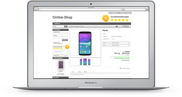 Sie haben etwas online bei einem Anbieter gekauft, der unser unabhängiges Bewertungssystem nutzt. Solche Unternehmen erkennen Sie an unserem Vertrauenssiegel oder den Bewertungsgrafiken.
